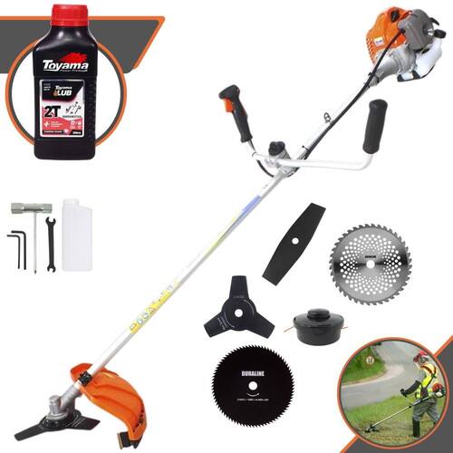Roçadeira Lateral Vulcan VR430P À Gasolina 2 Tempos 43cc 1,7HP + Faca 2 Pontas 330mm + Faca 40 Dentes 255mm + Faca 80 Dentes 255mm + Óleo TOYAMA LUB FG50 500ml 2T