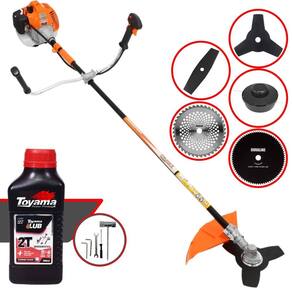 Roçadeira Lateral VULCAN VR520H À Gasolina 2 Tempos 52cc 2,5HP + Faca 2 Pontas 330mm + Faca 40 Dentes 255mm + Faca 40 Dentes 255mm + Óleo Toyama FG50 500ml