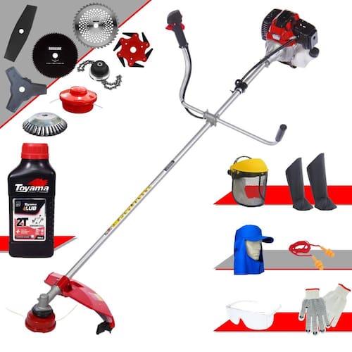 Roçadeira RT43L Toyama 43cc Com Carretel Nylon + Facas 2 Pontas, 3 Pontas, 6 Pontas, 40 Dentes, 80 Dentes, Trimmer e Escova de Aço + EPI + ÓLEO TOYAMA