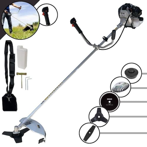 Com guidão ergonômico lateral, permite um alcance amplo e maior mobilidade, capaz de aumentar a produtividade diária. Possui motor 2 tempos á gasolina, de 42,7 Cilindradas, 12.000 de rotação 1,7HP de potência que proporcionam maior performance e economia na operação. Seu conjunto de acessórios inclui kit de ferramentas, cinto de suporte almofadado, carretel de nylon e lâmina de corte 3 pontas.