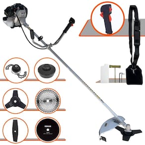 Com guidão ergonômico lateral, permite um alcance amplo e maior mobilidade, capaz de aumentar a produtividade diária. Possui motor 2 tempos á gasolina, de 42,7 Cilindradas, 12.000 de rotação 1,7HP de potência que proporcionam maior performance e economia na operação.Seu conjunto de acessórios inclui kit de ferramentas, cinto de suporte almofadado, carretel de nylon e lâmina de corte 3 pontas.