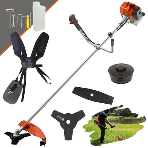 Com guidão ergonômico lateral, permite um alcance amplo e maior mobilidade, capaz de aumentar a produtividade diária. Possui motor 2 tempos á gasolina, de 42,7 Cilindradas (43cc) 9.000 de rotação 1,7HP de potência que proporcionam maior performance e economia na operação. Seu conjunto de acessórios inclui kit de ferramentas, cinto de suporte duplo almofadado, carretel de nylon e lâmina de corte 3 pontas.