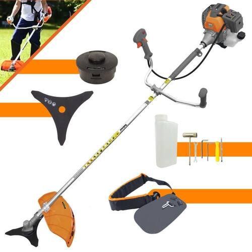 Com guidão ergonômico lateral, permite um alcance amplo e maior mobilidade, capaz de aumentar a produtividade diária. Possui motor 2 tempos á gasolina, de 42,7 Cilindradas (43cc) de rotação 1,7HP de potência que proporcionam maior performance e economia na operação. Seu conjunto de acessórios inclui kit de ferramentas, cinto de sustentação, carretel de nylon e lâmina de corte 3 pontas.