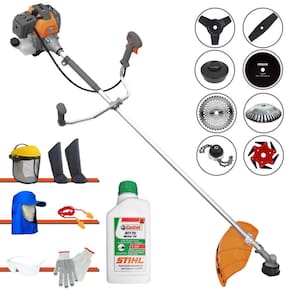 Roçadeira Lateral Tekna RL430P Plus Á Gasolina 2T 43cc 1,7HP + Faca 2 Pontas 330mm + Faca 40 Dentes 255mm + Faca 80 Dentes 255mm + Faca 6 Pontas + Escova Rotativa + Trimmer + ÓLEO CASTROL STIHL 500ml + Kit EPI