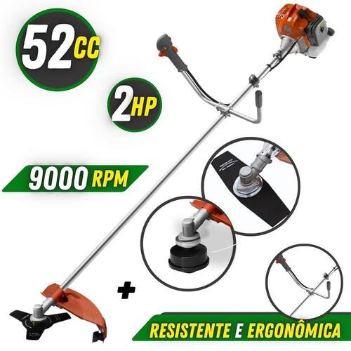 É uma roçadeira adpatável que pode se tornar multifuncional, podendo ser adaptado diversos modelos de acessórios, pois possui tubo de encaixe universal 28mm, e encaixe 25,4mm (1) para Lâminas e Facas, ampliando ainda a sua diversidade de cortes. Realizando o trabalho de forma ágil e confortável, com cinto duplo almofadado que acompanha o equipamento, proporcionando maior conforto, ergonomia e segurança ao operador. Com guidão ergonômico lateral, permite um alcance amplo e maior mobilidade, capaz de aumentar a produtividade diária. Possui motor 2 tempos á gasolina, de 51,6 Cilindradas (52cc) 9.000 de rotação 2,0 HP de potência que proporcionam maior performance e economia na operação.