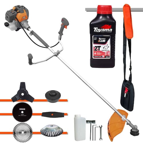 ATENÇÃO: A ROÇADEIRA É DA MARCA TEKNA E ACOMPANHA UM ÓLEO 2T DA MARCA TOYAMA