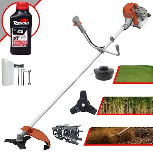 Roçadeira Lateral Tekna RL520AC-G2 Á Gasolina 2T 52cc 2HP + Enxada Rotativa Duraline Tubo 28mm Eixo 8x9 Estriado + ÓLEO TOYAMA LUB FG50 500ml 2T