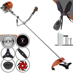 Com guidão ergonômico lateral, permite um alcance amplo e maior mobilidade, capaz de aumentar a produtividade diária. Possui motor 2 tempos á gasolina, de 51,6 Cilindradas (52cc) 13.000 de rotação 2,0 HP de potência que proporcionam maior performance e economia na operação. Seu conjunto de acessórios inclui kit de ferramentas, cinto de suporte duplo almofadado, carretel de nylon e lâmina de corte 3 pontas.