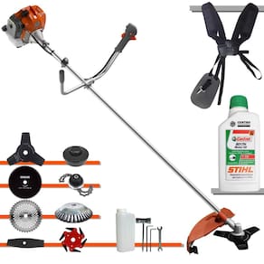 Com guidão ergonômico lateral, permite um alcance amplo e maior mobilidade, capaz de aumentar a produtividade diária. Possui motor 2 tempos á gasolina, de 51,6 Cilindradas (52cc) 13.000 de rotação 2,0 HP de potência que proporcionam maior performance e economia na operação. Seu conjunto de acessórios inclui kit de ferramentas, cinto de suporte duplo almofadado, carretel de nylon e lâmina de corte 3 pontas.