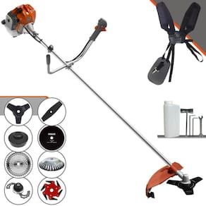 Com guidão ergonômico lateral, permite um alcance amplo e maior mobilidade, capaz de aumentar a produtividade diária. Possui motor 2 tempos á gasolina, de 51,6 Cilindradas (52cc) 9.000 de rotação 2,0 HP de potência que proporcionam maior performance e economia na operação. Seu conjunto de acessórios inclui kit de ferramentas, cinto de suporte duplo almofadado, carretel de nylon e lâmina de corte 3 pontas.