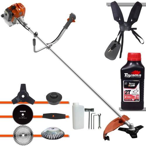 Com guidão ergonômico lateral, permite um alcance amplo e maior mobilidade, capaz de aumentar a produtividade diária. Possui motor 2 tempos á gasolina, de 51,6 Cilindradas (52cc) 9.000 de rotação 2,0 HP de potência que proporcionam maior performance e economia na operação. Seu conjunto de acessórios inclui kit de ferramentas, cinto de suporte duplo almofadado, carretel de nylon e lâmina de corte 3 pontas.