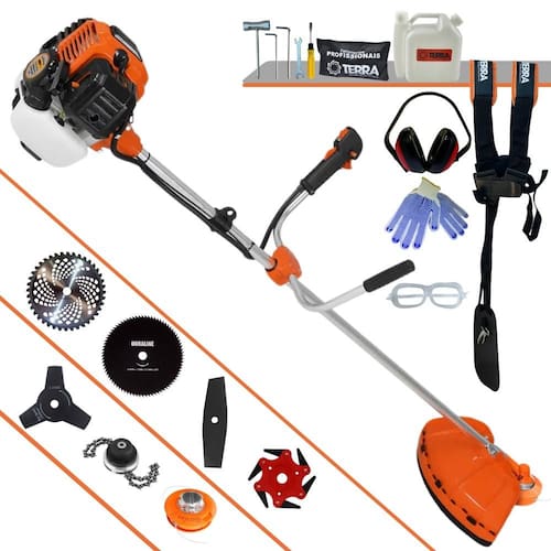 Roçadeira Terra GR520XP 52cc 2,5HP 7 Em 1 C/ Carretel, Faca 2 Pontas + Faca 3 Pontas + Faca 6 Pontas + Faca 40 Dentes + Faca 80 Dentes + Trimmer + EPI