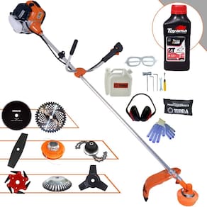 Roçadeira Terra GR520XP À Gasolina 2T 52cc 2,5HP Com Lâmina 40 Dentes + Faca 2 Pontas + Faca 3 Pontas + Faca 6 Pontas + Faca 80 Dentes + Escova 38C + Trimmer + Óleo TOYAMA FG50 500ml 2T