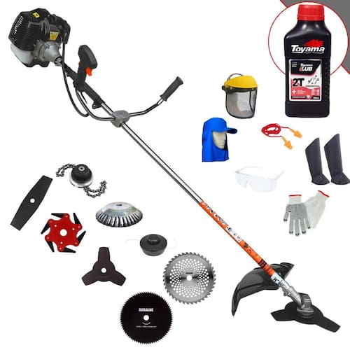 Roçadeira Lateral Terra GRH-430 Black À Gasolina 2 Tempos 43cc 1,7HP + Faca 2 Pontas 330mm 2,7mm + Faca 40 Dentes 255mm 2mm + Faca 80 Dentes 255mm 1,5mm + Faca 6 Pontas 250mm + Escova Rotativa 200mm 38 Cerdas + Trimmer + ÓLEO TOYAMA LUB FG50 500ml 2T + Kit EPI Completo