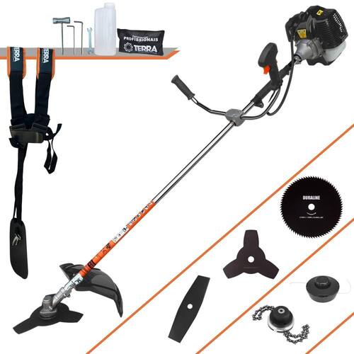Roçadeira Lateral Terra GRH-430 Black À Gasolina 2 Tempos 43cc 1,7HP + Faca 2 Pontas 330mm 2,7mm + Faca 80 Dentes 255mm 1,5mm + Trimmer