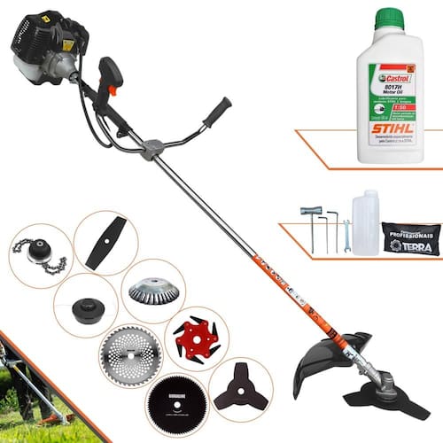 ATENÇÃO: A ROÇADEIRA É DA MARCA TERRA E ACOMPANHA UM ÓLEO 2T DA MARCA CASTROL STIHL.