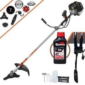 Roçadeira Profissional Lateral Terra GRH-430 Black À Gasolina 2 Tempos 43cc 1,7HP + Faca 2 Pontas 330mm 2,7mm + Faca 40 Dentes 255mm 2mm + Faca 80 Dentes 255mm 1,5mm + Faca 6 Pontas 250mm + Escova Rotativa 200mm 38 Cerdas + Trimmer + Óleo TOYAMA LUB FG50 500ml 2T