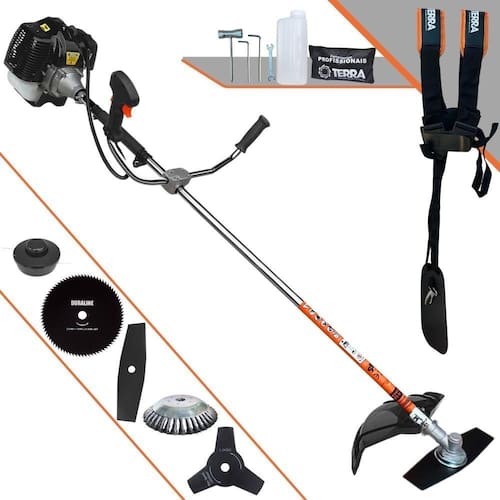 Marca: Terra | Com sistema antivibração: Não | Modelo: GRH5203P80D38C | Motivo de GTIN vazio: O produto é um kit ou pack | Capacidade do tanque de Óleo: N/A | Tipo de guiador: Aberto | Fonte do produto: N/A | Com regulação de guiador: Sim | Sistema de partida: Manual | Comprimento total: 180cm | Com guarda de segurança: Sim | MPN: 84678900 | Capacidade do tanque de combustível: 1,2L | Diâmetro de corte do disco de corte: 255mm | Largura total: 40cm | Tempos do motor: 2 | Eixo de transmissão: Reto | Peso: 12kg | Tipos de máquinas: Roçadeira | Cilindrada: 52cc | Tipo de eixo da máquina: Reto | Diâmetro de corte da tanza: 255mm | Sistemas de corte: Faca e Carretel de Nylon | SKU: GRH5203P80D38C | Acessórios incluídos: Kit ferramentas, cinto de segurança, misturador de combustível | Condição do item: Novo | Código universal de produto: 0703878009181 | É kit: Sim | Potência do motor: 2,5HP | Selo SEC: N/A