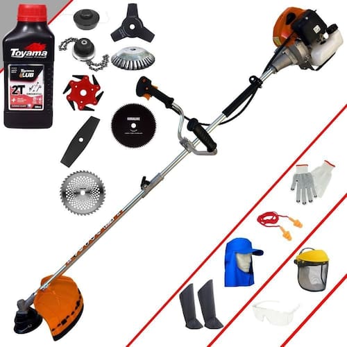 Roçadeira Terra GRHB-430 Bipartida À Gasolina 2 Tempos 43cc 1,7HP + Faca 3 Pontas + Faca 40 Pontas + Faca 80 Pontas + Faca 6 Pontas + Escova 38C + Trimmer + Óleo TOYAMA LUB FG50 500ml 2T + Kit EPI Completo