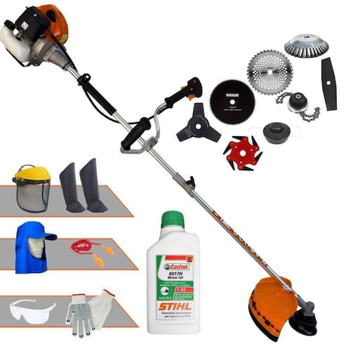Roçadeira Terra GRHB-430 Bipartida À Gasolina 2 Tempos 43cc 1,7HP + Faca 3 Pontas + Faca 40 Pontas + Faca 80 Pontas + Faca 6 Pontas + Escova 38C + Trimmer + Óleo Castrol Stihl 2T 500ml + Kit EPI Completo