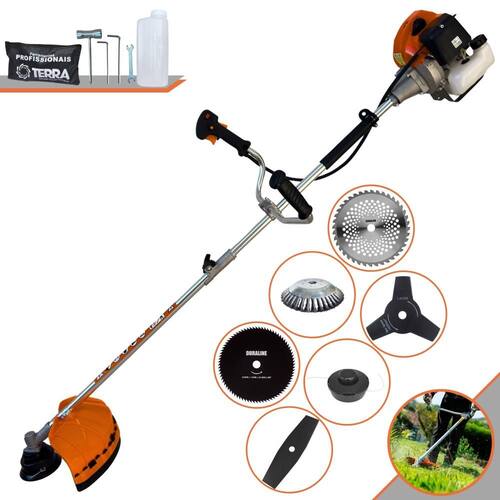 Roçadeira Lateral Terra GRHB-430 Bipartida À Gasolina 2 Tempos 43cc 1,7HP + Faca 3 Pontas + Faca 40 Pontas + Faca 80 Pontas + Escova Rotativa 38 Cerdas