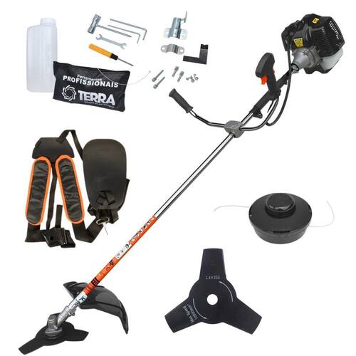 Roçadeira Lateral Terra GRH-430 Black À Gasolina 2 Tempos 43cc 1,7HP??MARCA TERRA - A ROÇADEIRA MAIS VENDIDA DO BRASIL??MELHOR CUSTO BENEFÍCIO DO MERCADO?ROÇADEIRA POTENTE E ECONÔMICA ?ALTA ROTAÇÃO E PERFORMANCE COM ECONOMIA?ASSISTÊNCIA TÉCNICA EM TODO TERRITÓRIO NACIONAL?PRODUTO COM GARANTIA OFICIAL TERRA EM TODO BRASIL?PEÇAS DE REPOSIÇÃO DE FÁCIL ACESSO??EQUIPE DE PÓS-VENDAS A DISPOSIÇÃO??A Roçadeira GRH-430 Black conta com motor 2 tempos à gasolina, 43 cilindradas e potência de 1,7 HP. Possui partida leve, com sistema manual, auto-retrátil, e com punhos ergonômicos de fácil aceleração, equipada com carburador universal BIGDINT de maior potência e economia, e também cinto de sustentação duplo com ombreiras almofadadas, proporcionando assim um maior conforto, ergonomia e segurança ao operador.??A Roçadeira Terra GRH430 foi projetada para facilitar o trabalho de roçada de capim, arbustos, pastagens, controle de pastos, trabalhos de jardinagem, limpeza e manutenção de grandes áreas verdes com sua utilização em sítios; fazendas e chácaras. Ideal também para manutenção e limpeza de vias públicas e rodovias. Desenvolvida com uma estrutura resistente e suporte do guidão reforçado, seus componentes possuem alta durabilidade. A vantagem da roçadeira é que pode ser utilizada em locais irregulares, morros, buracos, florestas, entre outro com dificuldade de acesso. Produto de alta qualidade, desempenho e durabilidade.??Operador, instrução recomendada para a utilização da máquina: Verifique a montagem e estado dos componentes da roçadeira; Assegure-se de estar utilizando todos os equipamentos de segurança; Leia o manual para saber como dar a partida em uma roçadeira; Segure a roçadeira com ambas as mãos durante a operação; Mantenha todas as partes de seu corpo longe da roçadeira durante sua operação; Sempre desligue o motor da roçadeira antes de deixá-la desassistida; Transporte sempre a roçadeira com o motor desligado; Proceda com a manutenção e limpeza da roçadeira. Há cuidados básicos que devem ser levados em conta para prolongar a vida útil de cada equipamento, dessa forma, além de manter o bom funcionamento você pode prevenir futuras falhas. Lembrando que se não cumprir as instruções de segurança pode resultar em lesões graves.??ESPECIFICAÇÕES TÉCNICAS:??Tipo: Roçadeira lateral, com guidão?Cód: 705486B?Modelo: GRH430 Black?Marca: Terra ?Motor: À Gasolina, 2 tempos ?Potência: 1,67HP (1,7HP)?Cilindradas: 42,7 (43cc)?Rotação: 6.500RPM?Ignição: Eletrônica?Partida: Manual Auto-retrátil?Carburador: Diafragma com Regulagem?Embreagem: Centrifuga em alumínio fundido?Capacidade do tanque de combustível: 1200ml?Autonomia: Aprox. 60min?Eixo Cardã: Eixo Rígido de 8mm x 9 estrias ?Tubo do Eixo Cardã: Tubo de Alumínio 26mm - 153cm?Guidão: Bi-Partido fixado com suportes parafusados?Lâmina: 3 Pontas, 255mm, espessura 2mm, furo 1"?Combustível: Gasolina com óleo 2 tempos, proporção 25:1?Carretel Nylon: Automático, libera o fio com um toque no chão?Peso: 9,50 kg??ITENS INCLUSOS:??01: Roçadeira GRH430;?01: Carretel com Nylon; ?01: Lâmina 3 pontas; ?01: Cinto Duplo com Ombreiras Almofadadas;?01: Misturador de combustível;?01: Kit ferramentas de manutenção; ?01: Manual de Instrução;