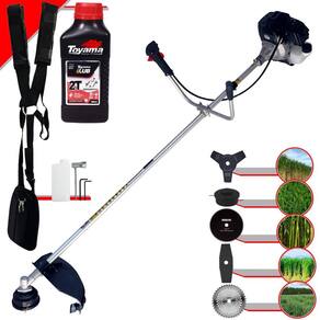 Roçadeira À Gasolina Toyama RT43L-B-25A 43cc 1,7HP 2T Com Lâmina 3 Pontas + Faca 2 Pontas 330mm + Faca 40 Dentes 255mm + Faca 80 Dentes 255mm + Óleo Toyama FG50 500ml