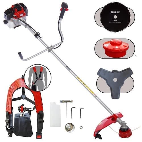 Com guidão ergonômico lateral, permite um alcance amplo e maior mobilidade, capaz de aumentar a produtividade diária. Possui motor 2 tempos á gasolina, de 43 Cilindradas, 10.000 de rotação 1,7HP de potência que proporcionam maior performance e economia na operação. Seu conjunto de acessórios inclui kit de ferramentas, cinto de suporte duplo almofadado, carretel de nylon e lâmina de corte 3 pontas.