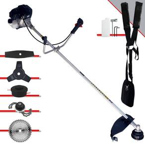 Roçadeira Profissional À Gasolina Toyama RT43L-B-25A 43cc 1,7HP 2T Com Lâmina 3 Pontas + Faca 2 Pontas 330mm + Faca 40 Dentes 255mm + Trimmer