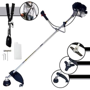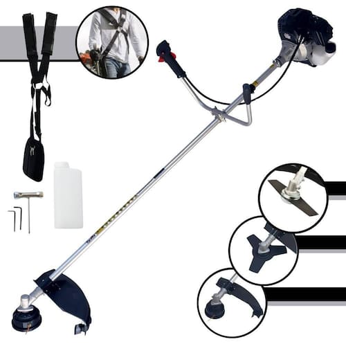 Com guidão ergonômico lateral, permite um alcance amplo e maior mobilidade, capaz de aumentar a produtividade diária. Possui motor 2 tempos á gasolina, de 43 Cilindradas, 10.000 de rotação 1,7HP de potência que proporcionam maior performance e economia na operação. Seu conjunto de acessórios inclui kit de ferramentas, cinto de suporte duplo almofadado, carretel de nylon e lâmina de corte 3 pontas.