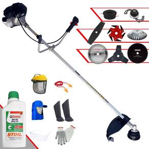 Roçadeira À Gasolina Toyama RT43L-B-25A 43cc 1,7HP 2T Com Lâmina 3 Pontas + Faca 2 Pontas 330mm + Faca 40 Dentes 255mm + Faca 80 Dentes 255mm + Faca 6 Pontas 250mm + Trimmer + Escova Rotativa 200mm 38 Cerdas + Óleo Castrol Stihl 500ml + Kit EPI Completo