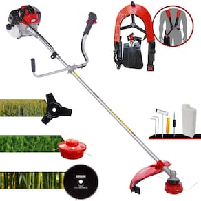 Com guidão ergonômico lateral, permite um alcance amplo e maior mobilidade, capaz de aumentar a produtividade diária. Possui motor 2 tempos á gasolina, de 52 Cilindradas, 10.000 de rotação 2HP de potência que proporcionam maior performance e economia na operação. Seu conjunto de acessórios inclui kit de ferramentas, cinto de suporte duplo almofadado, carretel de nylon e lâmina de corte 3 pontas.