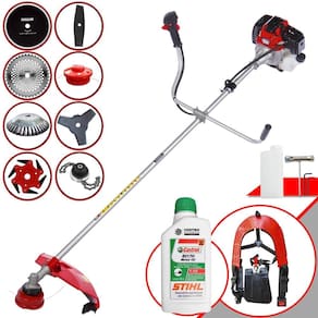 Roçadeira À Gasolina Toyama RT52L 52cc 2HP 2T Com Lâmina 3 Pontas + Faca 2 Pontas 330mm + Faca 40 Dentes 255mm + Faca 80 Dentes 255mm + Faca 6 Pontas 250mm + Trimmer + Escova Rotativa 200mm 38 Cerdas + Óleo Castrol Stihl 500ml