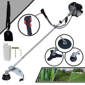 Com guidão ergonômico lateral, permite um alcance amplo e maior mobilidade, capaz de aumentar a produtividade diária. Possui motor 2 tempos á gasolina, de 42,7 Cilindradas, 12.000 de rotação 1,7HP de potência que proporcionam maior performance e economia na operação. Seu conjunto de acessórios inclui kit de ferramentas, cinto de suporte almofadado, carretel de nylon e lâmina de corte 3 pontas.
