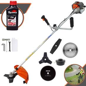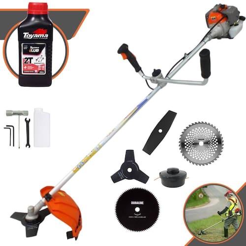 Roçadeira Lateral Vulcan VR330P À Gasolina 2 Tempos 33cc 1,2HP+ Faca 2 Pontas 330mm + Faca 40 Dentes 255mm + Faca 80 Dentes 255mm + Óleo Toyama FG50 500ml