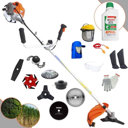 Roçadeira Lateral Vulcan VR430P À Gasolina 2 Tempos 43cc 1,7HP + Faca 2 Pontas + Faca 40 Dentes + Faca 80 Dentes + Faca 6 Pontas + Trimmer + Escova Rotativa 38 Cerdas + ÓLEO CASTROL STIHL + KIT EPI