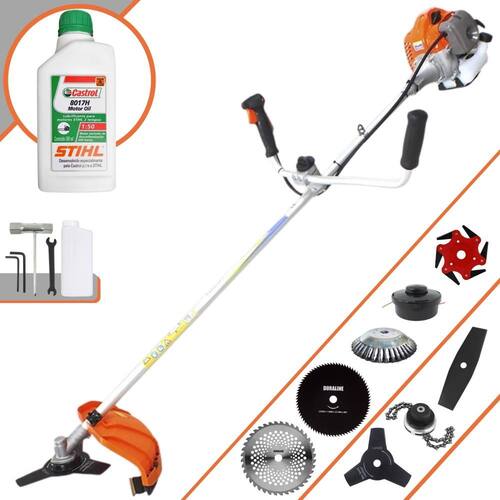Roçadeira Vulcan Lateral VR430P 2T 43cc 1,7HP À Gasolina Com Faca 3 Pontas + Faca 2 Pontas 330mm + Faca 40 Dentes 255mm + Faca 80 Dentes 255mm + Faca 6 Pontas 250mm + Trimmer + Escova Rotativa 200mm 38 Cerdas + ÓLEO CASTROL STIHL 500ml