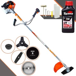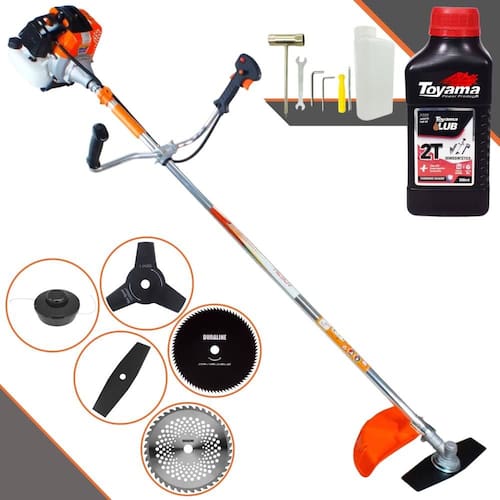 Roçadeira Lateral Vulcan VR430S À Gasolina 2 Tempos 43cc 1,7HP + Faca 3 Pontas 255mm + Faca 40 Dentes 255mm + Faca 80 Dentes 255mm + Óleo TOYAMA LUB FG50 500ml 2T
