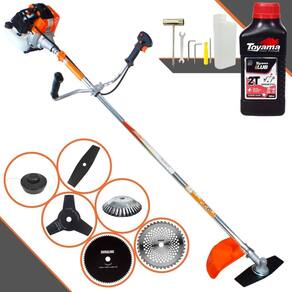 Roçadeira Lateral Vulcan VR430S À Gasolina 2 Tempos 43cc 1,7HP + Faca 3 Pontas 255mm + Faca 40 Dentes 255mm + Faca 80 Dentes 255mm + Escova Rotativa 200mm 38 Cerdas + Óleo TOYAMA LUB FG50 500ml 2T