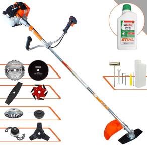 Roçadeira Vulcan VR430S 43cc 1,7HP Com Carretel + Facas 2 Pontas, 3 Pontas, 6 Pontas, 40 Dentes, 80 Dentes, Trimmer, Escova de Aço + ÓLEO STIHL 2T