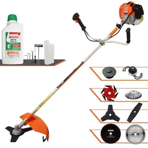 Roçadeira Lateral Vulcan VR620H À Gasolina 2 Tempos 62cc 3HP + Faca 2 Pontas 330mm + Faca 40 Dentes 255mm + Faca 80 Dentes 255mm + Faca 6 Pontas 250mm + Trimmer + Escova Rotativa 200mm 38 Cerdas + Óleo Castrol Stihl 500ml