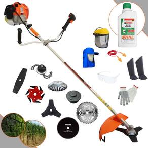 Roçadeira Lateral Vulcan VR620H À Gasolina 2 Tempos 62cc 3HP + Faca 2 Pontas 330mm + Faca 40 Dentes 255mm + Faca 80 Dentes 255mm + Faca 6 Pontas 250mm + Trimmer + Escova Rotativa 200mm 38 Cerdas + Óleo Castrol Stihl 500ml + Kit EPI Completo