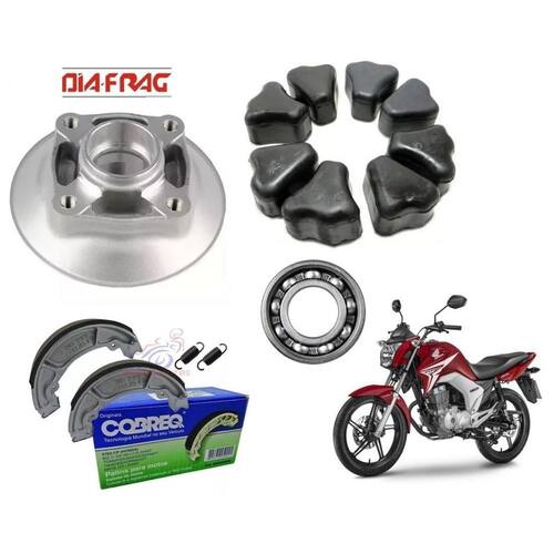 Itens inclusos: 04 Buchas Coroa - 01 Contra Choque - 01 Lona - 01 Rolamento Compatível com: Cg Sport Titan Fan Cargo Start 150 Para Os Anos: 2004 - 2005 - 2006 - 2007 -2008 - 2009 - 2010 - 2011 - 2012 - 2013 - 2014 - 2015 Marca Fabricante Buchas: Dvsc Marca Fabricante Contra Choque: Diafrag Marca Fabricante Lona: Cobreq Marca Fabricante Rolamento: Dvsc Disponibilidade Imediata