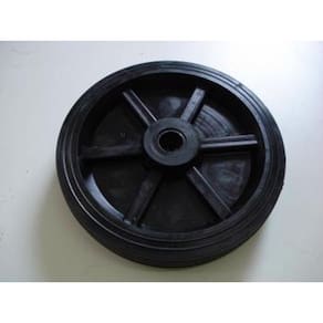 - Material Pneu: Borracha - Material Núcleo: PP (Polipropileno) - Diâmetro da roda: 9' ou 228,6mm - Diâmetro furo eixo: 7/8 ou 22,22mm - Capacidade de peso por roda: 120kg - Largura da Roda: 50mm