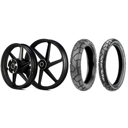 RODA BROS 160 2015 A 2022 XRE 190 2016 A 2023 LIGA LEVE PRETO FOSCO 6P A DISCO + 2 PNEU VIPAL TR400 90/90-19 + 110/90-17 Ean: 7897046740921