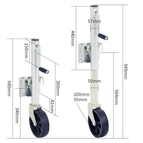 Resistente a corrosão produto zincado com roda de nylon Diâmetro da roda 19 cm Largura da roda 5 cm Altura total com pedestal encolhido 70 cm Altura total com pedestal aberto 95 cm Terceira roda reboque pedestal articulado Acompanha parafusos e chapas para a instalação Serve em todos os tipos de carretas rodoviárias Marca: Nautiparts