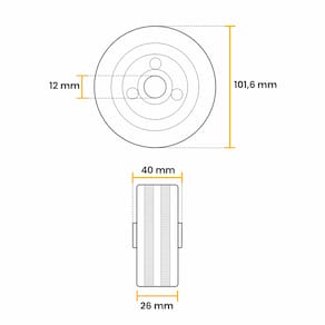 Roda Borracha Maciça, C/ Rolamento, 4" X 12 Mm, A09742 - Ajax.
