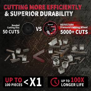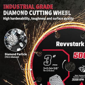 IMPORTANTE: Se for um produto elétrico, ele pode ser compatível com uma tomada de 110 volts. Se utilizado fora dos Estados Unidos, pode ser necessário um conversor de voltagem para garantir a operação adequada. Verifique se o produto que você está comprando é elétrico antes de considerar essas informações. Pacote com 3 rodas de corte diamantadas de 3 polegadas com mandril de 3/8", roda de corte de metal duro, disco de corte de rebarbadora, roda de corte de 3 polegadas para metal com mais de 5000 cortes em vergalhão, aço, ferro e inox - Especificações: roda de corte diamantada Revvstark de 3 pol. (76 mm), diâmetro do furo de 3/8 pol. (9,5 mm), espessura de 0,039 polegadas (1,0 mm); A velocidade operacional máxima segura é de 20.300 RPM - Roda de corte diamantada para metal: a tecnologia de brasagem atualizada brasa permanentemente a indústria partículas de diamante de qualidade na borda do núcleo de aço, criando uma lâmina indestrutível e resistente ao calor; o núcleo é revestido com grão abrasivo em ambos os lados para um corte suave, e a borda do disco de corte é projetada com orifícios arredondados para maior dissipação de calor e poeira - Corpo de aço sólido mais seguro de usar: corpo de aço robusto reduz muito o risco de quebras e ferimentos, aumentando a segurança e a produtividade; arestas de corte de diamante: menos faíscas, não poeira, sem odor, sem superaquecimento; Suas lâminas atualizadas proporcionam maior vida útil, resistência a altas temperaturas e baixo ruído - Corte de metal eficiente e preciso: o design de substrato ultrafino de 1,2 MM reduz a resistência ao corte, melhora a nitidez da lâmina e mantém o diâmetro autêntico da lâmina de corte durante toda a vida útil para melhor controle, alcance e precisão; a aresta de corte revestida de diamante mais larga e densa oferece maior eficiência de corte - Vida útil e durabilidade extra longas: material de nível industrial corta metal até 5.000 vezes com uma vida útil de 120 vezes maior, tornando-o mais durável, maior produtividade, menor tempo de inatividade e menor custo por corte - Livre de contaminantes e Menos poeira: cortado de forma limpa e livre de contaminação. O material diamantado com corpos de aço sólido não se desgasta e produz menos poeira, reduzindo o risco de detritos, reduzindo o tempo de limpeza e resultando em uma estação de trabalho mais limpa - Ampla aplicação: projetadas para maior resistência, precisão e maior vida útil, as rodas de corte Revvstark são ideais para uso com materiais metálicos, como vergalhão, aço, ferro e INOX; servem para todas as marcas de trituradores, rebarbadoras com mandris de 7/8" (22,23 mm)