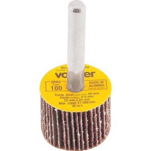 Ref.: do Fornecedor:1271252100Marca:VonderConteúdo da Embalagem:1 Roda de lixa com hasteDestaques e diferenciais:Prática e econômica, oferece acabamento consistente e taxas de corte uniformeAplicações e dicas de uso:Indicada para lixamentos e acabamentos de superfícies planas, contornos e partes internas em aço, ferro, plástico, alumínio, entre outros. Adaptável em lixadeiras para tornos, furadeiras elétricas e chicotes em geral.Características Técnicas:Diâmetro externo da roda de lixa: 25,0 mm Espessura da roda de lixa: 20,0 mm Diâmetro da haste da roda de lixa: 6,0 mm Rotação máxima rpm : 27000 /min Grão: G 100 Tipo de grão abrasivo: Óxido de alumínio Marca: Não Informado