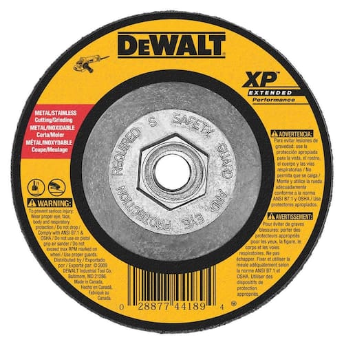 Rebolo DeWalt DW8809 4-1/2" x 1/4" x 5/8" - 11 XP - Grão de zircônia resistente premium para maior vida útil e remoção de material - A alta concentração de grãos garante ação agressiva de moagem e rodas de rolamento mais suaves - Design exclusivo de roda para rodas duráveis e de longa vida útil - 3 folhas completas de fibra de vidro para maior durabilidade e segurança